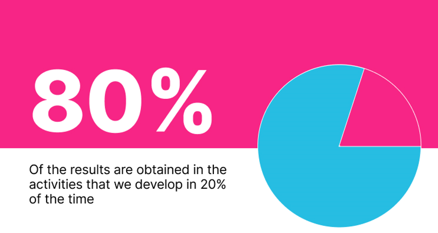 Did you know that the activities we develop in 20% of the time produce 80% of the results? In fact, the really important things take only 30% of the time. So, if we can properly organize ourselves, we can carry out those important tasks while meeting the objectives set.