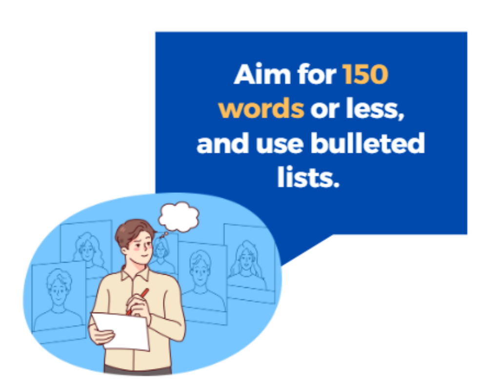 Tip: to have greater visibility with your CV on LinkedIn, work on your profile description. Keep it short, sweet, and easy to read.